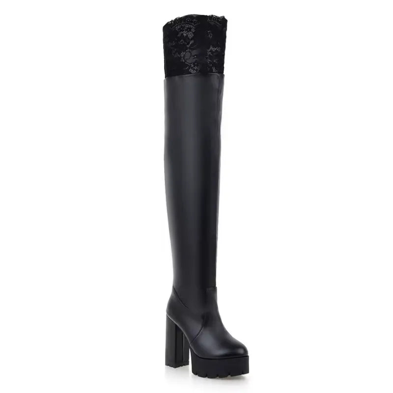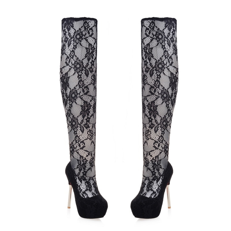 Bota Over The Knee Rendada Com Salto Agulha Glam