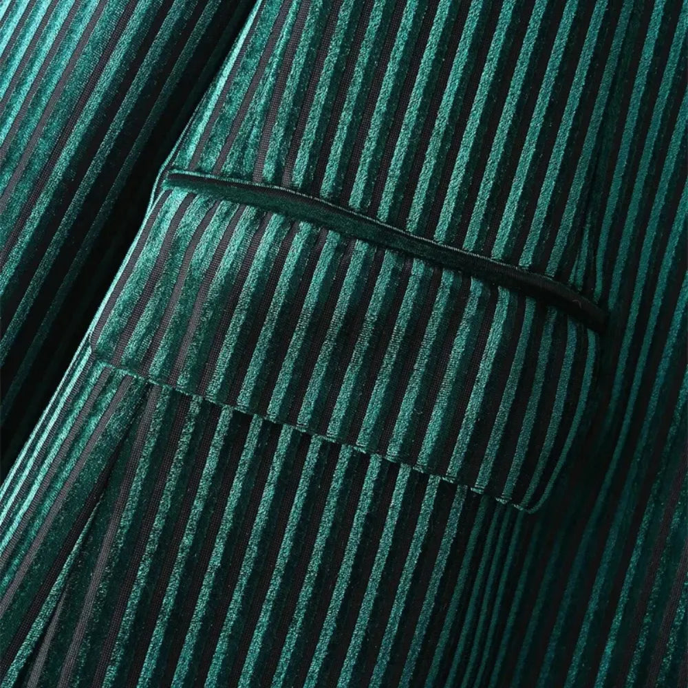 O Blazer Veludo Canelado Verde Esmeralda possui tecido encorpado, com textura marcante e toque macio, garante caimento impecável e presença imediata. Os botões dourados trazem um charme clássico e refinado, elevando a peça a um novo nível de estilo. A estrutura levemente acinturada valoriza a silhueta, enquanto o forro interno oferece conforto e acabamento de alto padrão. Do visual de trabalho à produção para eventos especiais, esse blazer se adapta com facilidade — sempre com muito bom gosto e personalidade.