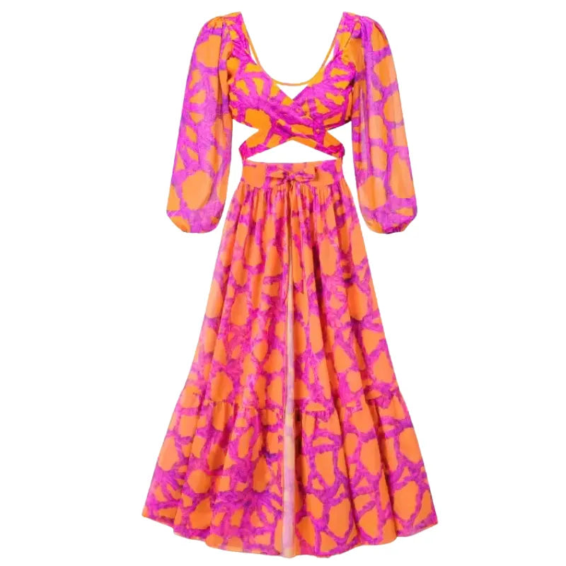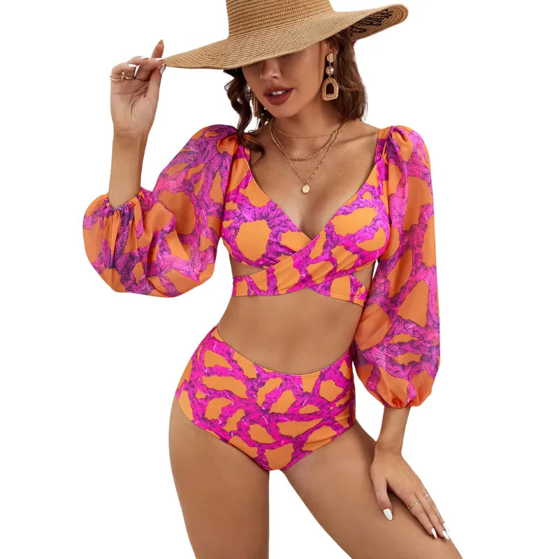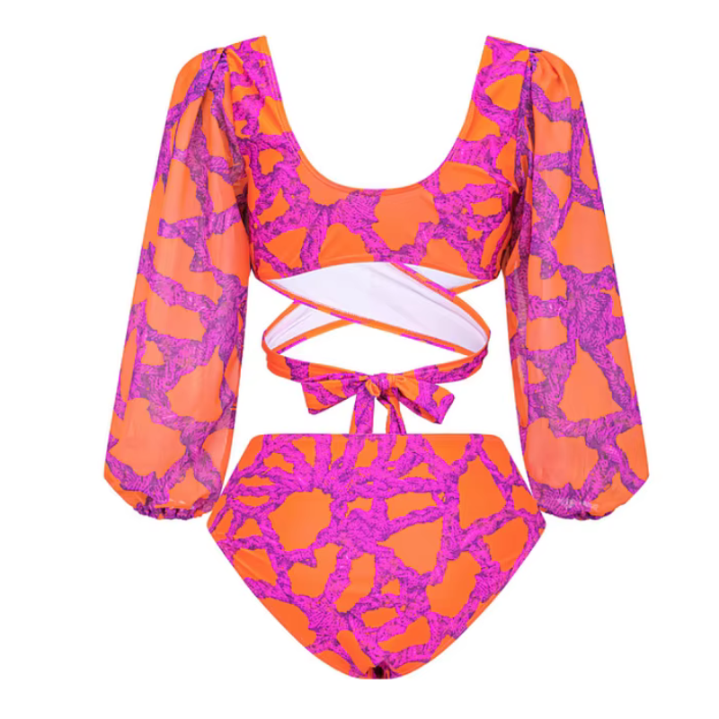 O Biquíni Manga Longa Estampa Tropical combina estilo, elegância e funcionalidade em uma peça vibrante em tons de laranja e pink. O top traz mangas longas em tule levemente transparente e um detalhe frontal cruzado com amarração ajustável que valoriza a silhueta. A calcinha de cintura alta complementa o look com conforto e sofisticação. Produzido em tecido de alta qualidade, o conjunto oferece elasticidade, durabilidade e proteção extra contra o sol, mantendo leveza e conforto para dias ensolarados.