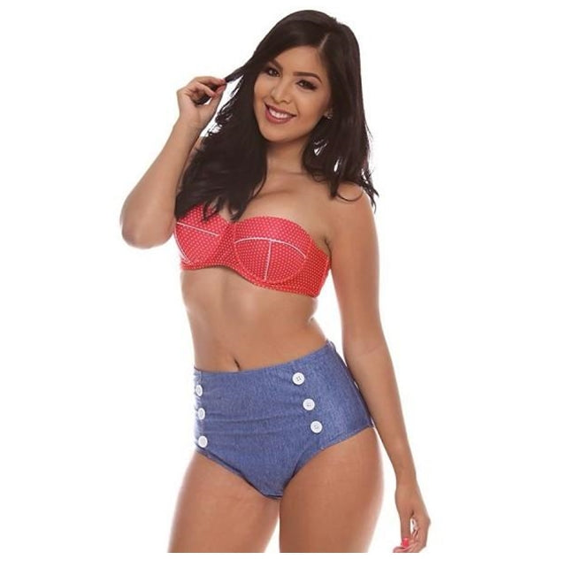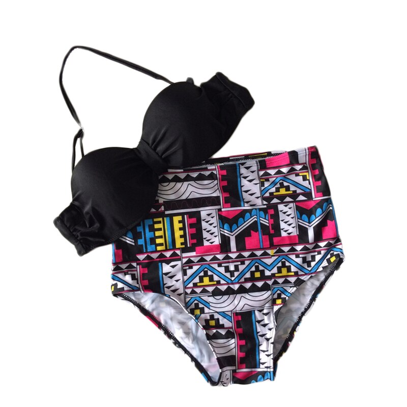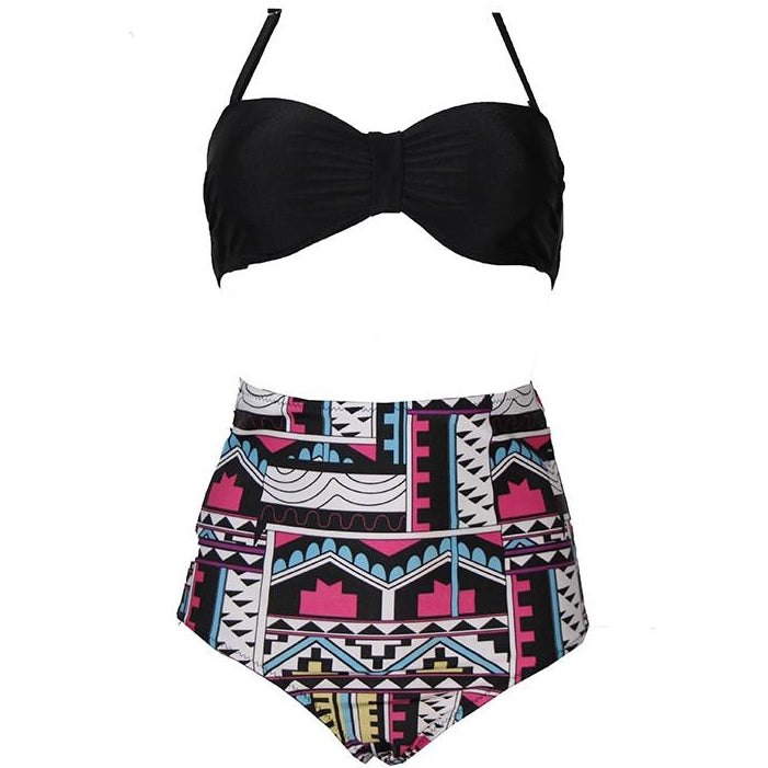 Biquíni Retrô Cintura Alta Estampa Étnica