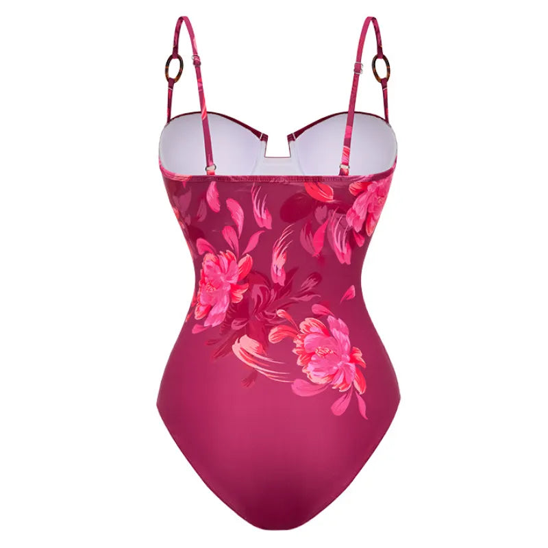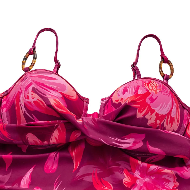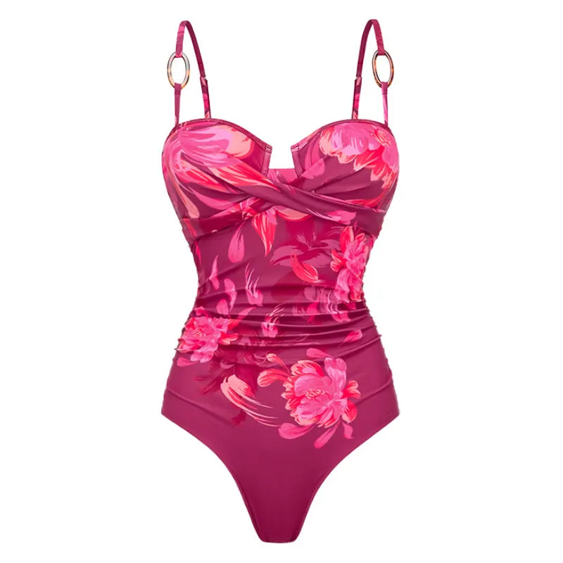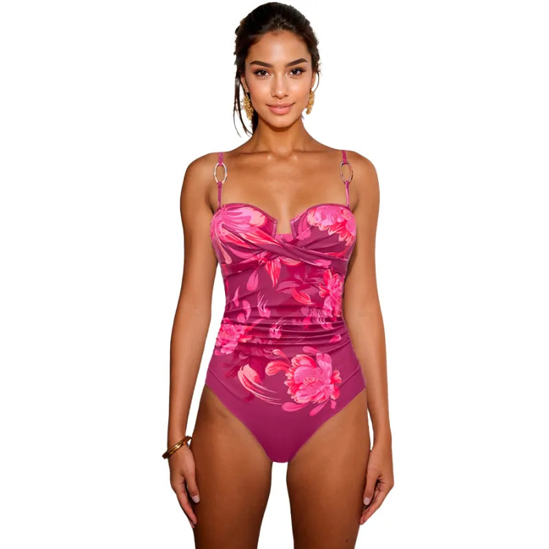O Maiô Floral Vinho Drapeado combina sofisticação e romantismo em uma estampa floral vibrante sobre fundo vinho intenso. O drapeado delicado no busto e na cintura realça a silhueta com elegância, enquanto o decote coração valoriza o colo. As alças finas ajustáveis com detalhe metálico trazem um toque moderno, e a modelagem estruturada garante conforto e suporte. Confeccionado em tecido de alta qualidade, com elasticidade e secagem rápida, é perfeito para quem busca um visual elegante e atemporal em momentos à beira-mar ou em resorts.