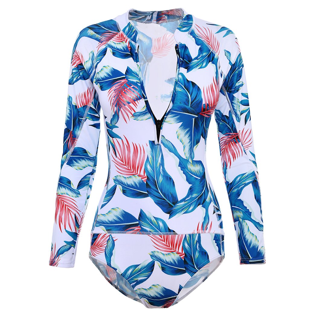 Maiô Manga Longa Tropical Zíper