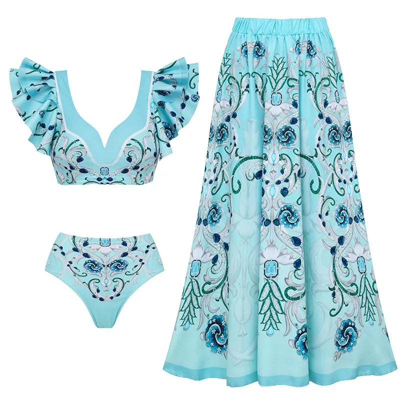 Biquíni - Com Saída- Elegance Barroco Aqua - Azul- Poderosa