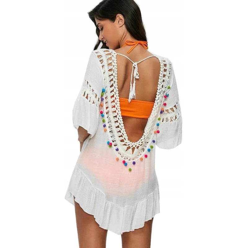 Saída de Praia Detalhe Pompons Coloridos