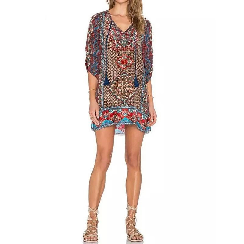 Saída de Praia Kaftan Boho Floral