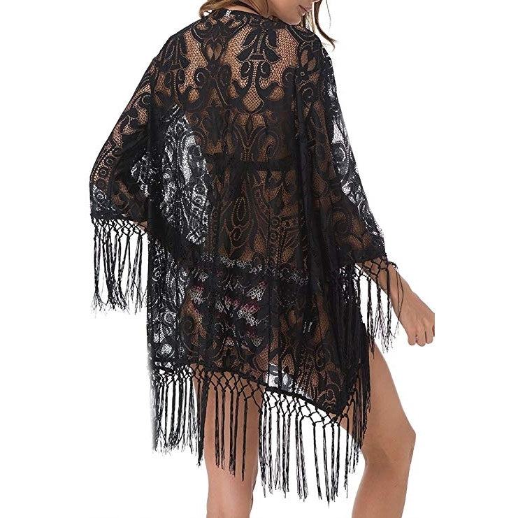 Saída de Praia Kimono Renda Preta