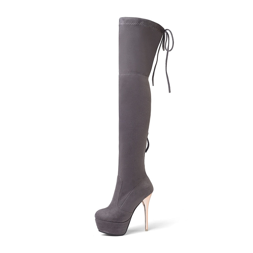 Bota Cano Alto Plataforma Salto Bloco Preta