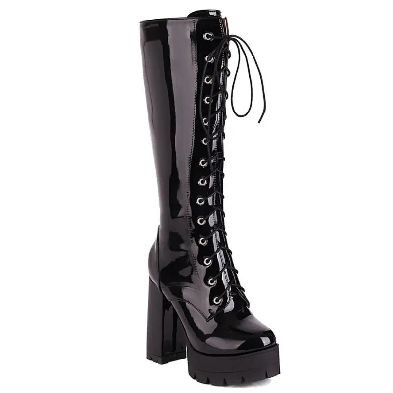 Bota Cano Longo Verniz Com Amarração