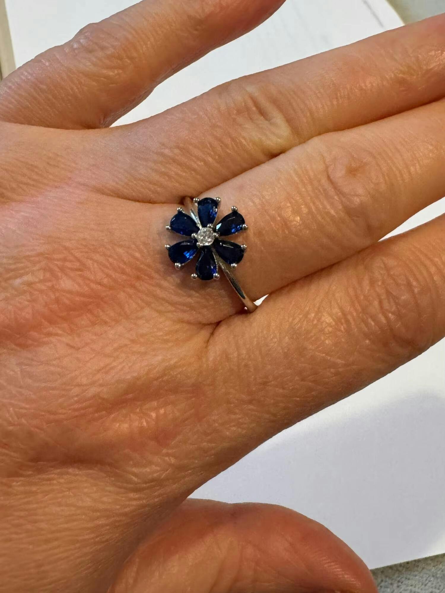 O Anel Flor de Safira Prata 925 é uma joia que exala elegância e delicadeza, ideal para mulheres que apreciam o encanto das flores aliado ao brilho de pedras preciosas. Confeccionado em prata 925 de alta qualidade, o anel apresenta um deslumbrante design floral com pétalas formadas por cristais azuis que evocam a beleza e a profundidade das safiras. No centro, um cristal claro delicadamente lapidado confere ainda mais sofisticação e luminosidade à peça. Seu design único e harmonioso é perfeito para ocasiões especiais ou para dar um toque de glamour ao dia a dia.